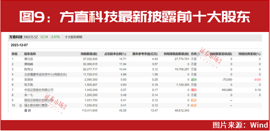 类似的,瑞士联合银行新进重仓的方直科技,也收获了近10%的上涨。公司公告显示,以12月7日登记数据,瑞士联合银行同样已以新进姿态成为了公司第十大股东(见图9)。