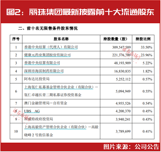 12月14日,丽珠集团发布公告,公司12月12日登记在册的前十名无限售条件股东中,瓴仁以509.49万股的持仓位居公司第六大流通股东,持股数较三季度末未发生变动(见图2)。