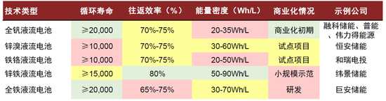 图表33:部分液流电池材料体系对比