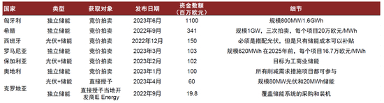 图表12:欧洲近两年公布的储能补贴