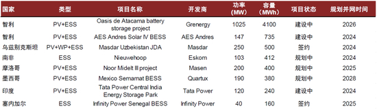 图表16:亚非拉国家部分规划/在建大型储能项目