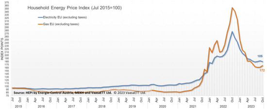 图表25:欧洲天然气价格及居民侧电价