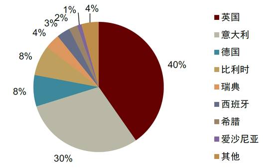 英国引领大储装机,意大利平均时长更长。据我们通过北极星储能网和Energy Storage News等平台追踪统计的数据,目前新增储能项目仍以英国、意大利以及德国为主,其中英国引领欧洲大储市场,项目储备丰富,英国国家电网近期宣布,计划将19个电化学储能项目(规模合计10GW)并网时间平均提前于原先协议时间四年[5],推动项目加速。英国大储项目时长多以1-2小时为主,而意大利大储新增项目时长多处于4-6小时区间,例如2023年11月Pacific Green公布的5个BESS项目资产,合计规模500MW/2,800MWh。我们认为储能时长偏好的差异来源于当前英国和意大利储能项目收入来源的差异,英国短时储能参与频率响应获取受益,而意大利当前能量时移为其主要来源。