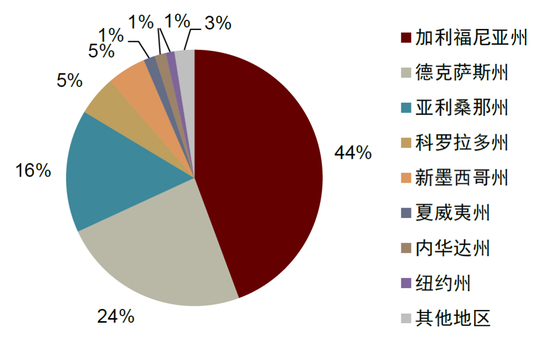 图表7:2023年美国电池储能已并网项目区域分布
