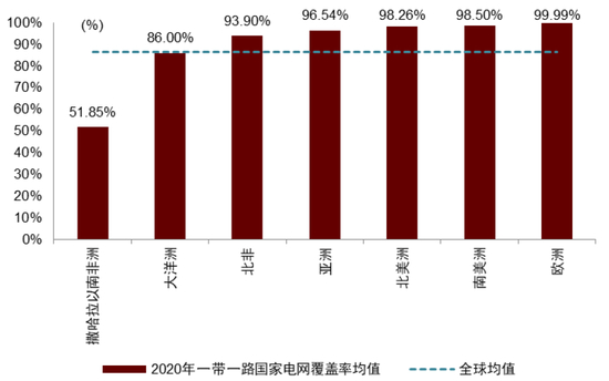 图表15:各地区一带一路国家电网覆盖率均值