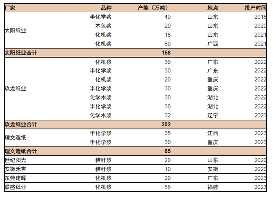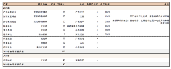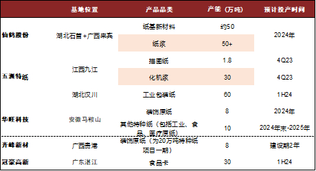 图表28:特种纸龙头新建产能规划