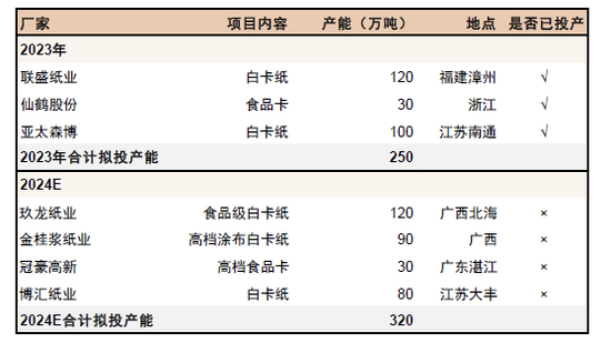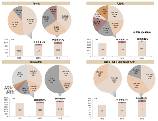 图表3:造纸各板块2023-24年供给增量概览