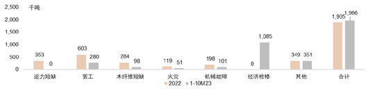 图表13:商品浆计划外减产量和扰动因素