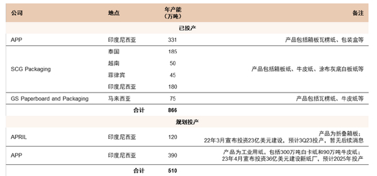 图表35:东南亚龙头包装纸产能(截至1H23;我们不完全统计)