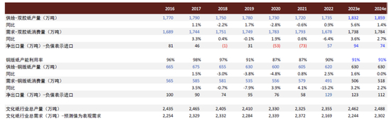 图表21:文化纸供需平衡表