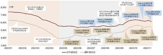 注:海外浆厂报盘价均指中国市场,通常在上个月中下旬公布下个月的报盘价