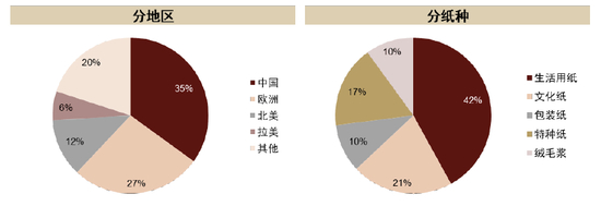 图表5:全球纸浆消费量分地区和纸种拆分