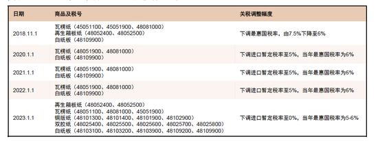 图表33:2018年至今成品纸进口关税调整一览