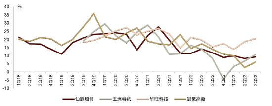 2023年回顾:2H23行业迈入温和复苏。1H23特种纸板块盈利受损严重,浆价下跌并未如期兑现盈利弹性,核心原因在需求修复低于预期,各类纸种在上半年出现了不同幅度的降价,剪刀差盈利未能显现;步入3Q23,我们观察到,传统旺季+补库需求+成本向上支撑催化纸价自底部向上,同时前期高价浆库存消耗完毕,纸厂逐步享受“浆-纸”剪刀差盈利,我们看好4Q23盈利修复延续环季度向上态势。