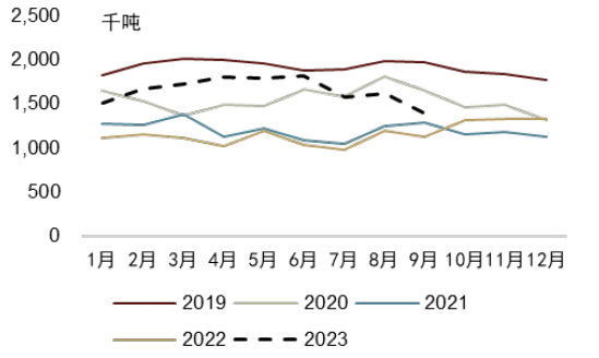 针叶浆新增产能影响有限。区别于阔叶浆,2023年仅有一个大型针叶商品浆项目投产,即芬兰Metsa Kemi工厂,由于其为旧厂的升级改造项目,我们估算净新增针叶商品浆年产能约80万吨(占全球针叶商品浆产能约3%,2022年口径)。公司表示Kemi工厂于10月份开始发货,结合产能爬坡和运输周期,我们预计抵达中国市场的时间大约在年末。但考虑到今年针叶商品浆计划外减产量明显增加,主要受木纤维供给短缺和罢工影响,我们认为或可抵消Kemi项目出货到港的压力(据RISI,1-10M23针叶浆计划外减产量同比+55%至90.2万吨)。