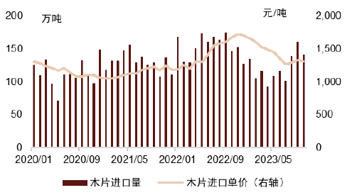 图表14:中国木片进口量和单价