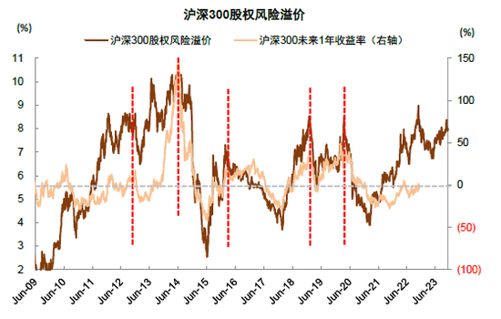 图表:历史上股权风险溢价高位所对应未来1年取得正收益的概率相对较高