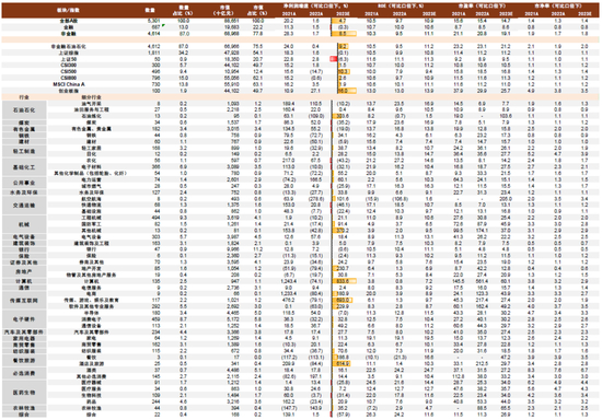图表:A股各板块基本面情况:盈利数据基于市场一致预期