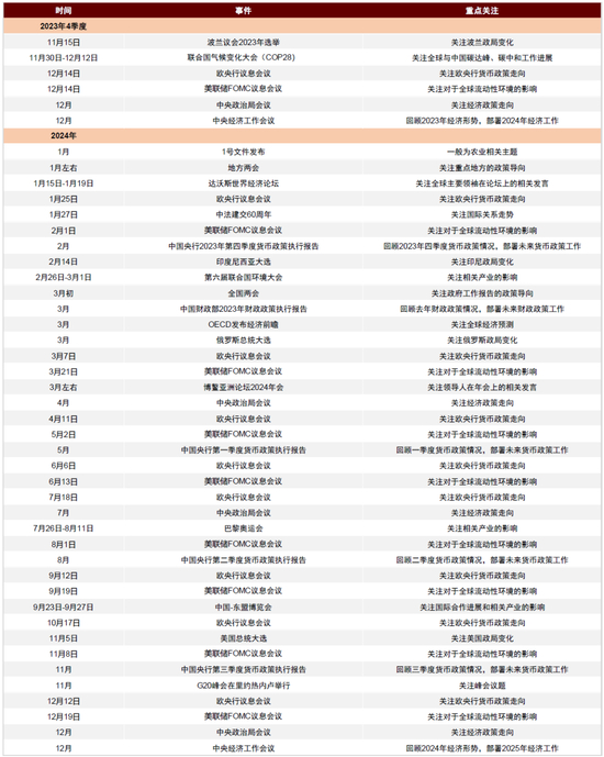 图表:未来一段时间国内外可能的重要事件不完全梳理