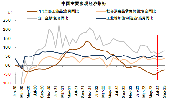 2024年我国经济增长关注以下方面:1)地产在经济增长中体量占比下降,但可能仍是预期回稳的关键:2023年房地产销售面积在低基数的基础上进一步回落,1-9月住宅销售面积同比下滑6.3%至7.28亿平方米,按照当前路径推算全年销量相比2021年高峰期的年化17.3亿平方米已有较大幅度调整。中金地产组判断2024年房地产可能仍将受供需两侧影响,需关注地产投资及产业链的变化趋势及政策应对。[1]2)物价修复程度:2023年在总需求恢复相对缓慢,而制造业投资为代表的供给侧连续高增长之后,供需不平衡叠加工业企业加速去库存影响下,CPI和PPI均相对偏弱,前三季度GDP平减指数同比下滑0.78%,也是企业盈利与经济景气背离的主因;2024年伴随供需矛盾缓解,以及工业库存降至低位,物价下行压力或得到改善,修复幅度取决于内外需的恢复情况。3)出口形势仍有不确定性但有望边际缓和:我们认为2024年美国经济有望软着陆,去库周期临近尾声,叠加我国出口竞争力仍在提升,中金宏观组判断2024年我国出口增长2%,但非经济因素影响之下,供应链调整带来“去中心化”影响仍值得关注[2]。
