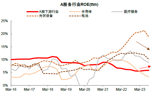 2)供给侧分化:在内外需增长中枢有所放缓的背景下,供给侧逐渐成为需要关注的重点,部分资本开支大幅扩张的领域当前或面临阶段过剩问题,而供给侧率先放缓的领域在供需压力方面具备比较优势。我们通过全行业的梳理(详见《从供给侧出清视角看行业投资机会》),部分上游资源行业和传统制造业过去资本开支长期不足,基本面经历了中长期的供给出清,不仅在当下可能更有韧性,而且未来基本面边际改善也将具备更大的业绩弹性。该逻辑在2023年上市公司的基本面和股价已得到初步体现,2024年我们认为仍然值得重视。