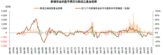 1)偏股型公募基金新发情况的明显改善或仍需时间:截至2023年10月31日,公募基金发行8132亿份,其中股票型和混合型基金发行规模为2630亿份,较去年同期3526亿份的规模继续回落。根据我们所构造的新发基金成本指数,一般在基金指数超过成本指数,即市场具备赚钱效应以及基民获得感提升阶段,新发偏股型基金会有显著回升。展望2024年,存量产品表现对风险偏好的压制或仍需时间消化。