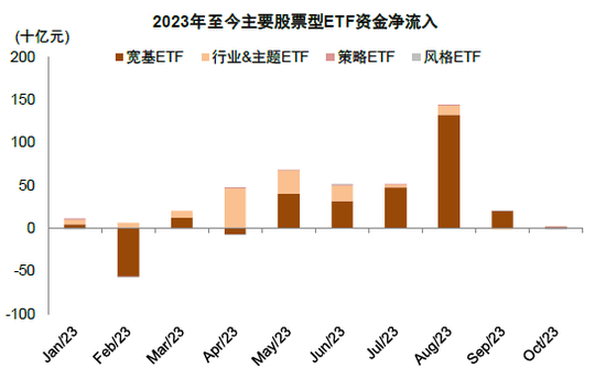 ETF净流入或仍为增量资金重要来源:2023年初以来,我国ETF市场规模保持扩张态势。截至10月31日,ETF份额合计1.95万亿份,其中股票型ETF合计1.29万亿份;ETF净流入5309亿元,其中股票型ETF净流入3497亿元。展望2024年,考虑到市场中长期投资性价比凸显,我国增长预期及海外流动性有望改善,ETF或延续净流入态势。