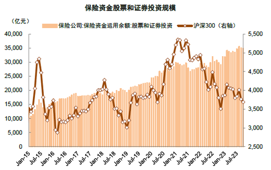 图表:2023年用于股票和证券投资的保险资金规模持续提升