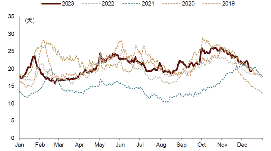 图表38:二十五省动力煤下游存煤天数处于正常范围内