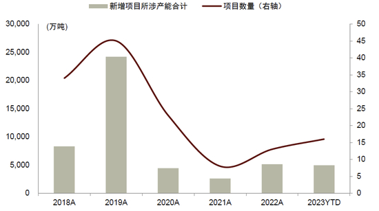 注:1)2023年截至11月22日;1)2019年核准项目涉及产能较多,主要是部分项目集中核准的原因