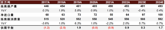 炼焦煤供需可能维持相对偏紧,主要是基建高增长为需求提供韧性,库存低位导致下游具备刚性补库需求,而国内供给存在不确定性扰动,同时进口增量比较有限,因此我们预计2024年炼焦煤价格仍有支撑,尤其是受供给扰动风险影响更大的优质主焦煤。
