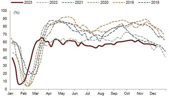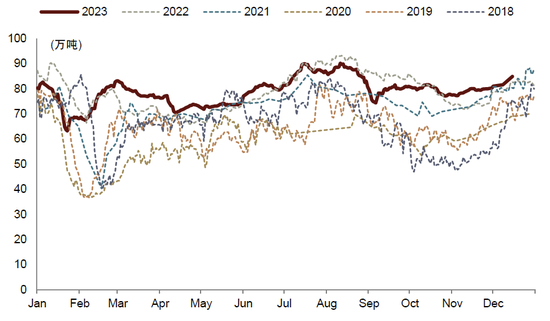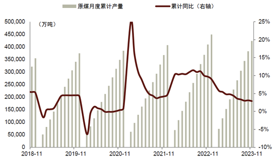 需求增长存韧性。短期来看,随着电煤旺季来临,动力煤消费量持续爬升,终端库存已经开始去化。考虑到春节前发电取暖用煤可能存在刚需补库,我们认为这将对煤价形成一定支撑。展望2024年,我们认为在经济有韧性下,煤炭需求有望实现平稳增长,电煤需求仍有增量空间,非电用煤存在结构性增长,若水电恢复偏弱,煤炭需求仍有可能超预期增加。