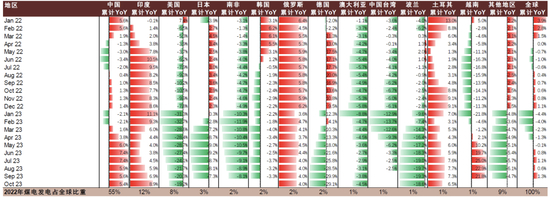 ► 全球供应链调整拉动供应链输入国煤炭消费。今年前三季度越南煤电同比+22%,煤炭进口同比+96%。除了今年越南水电因干旱出力不足以外,煤炭需求的走强也反映出,全球供应链调整对供应链输入地区能源需求的拉动。往前看,随着供应链调整继续进行,我们认为诸如越南等类似国家和地区的煤炭需求或保持增长。