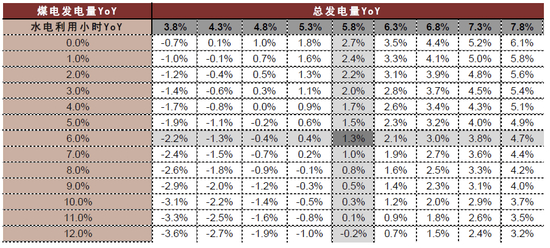 图表22:2024年不同发电增速和水电利用小时变化情景下的煤电增速敏感性分析
