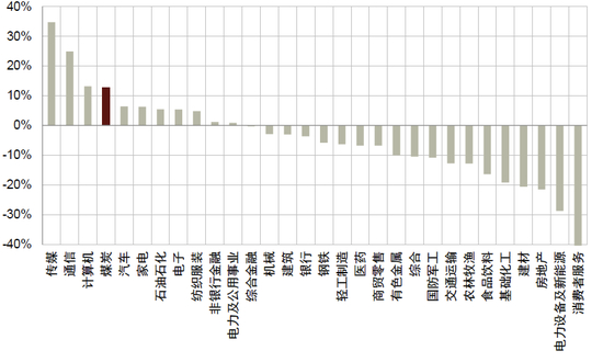 图表6:今年以来煤炭板块累计涨幅排名靠前