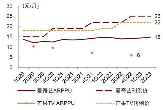 图表6:2023年以来爱奇艺ARPPU稳中有升,但仍较刊例价有较高差距