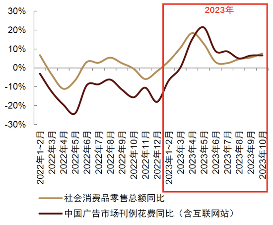 图表18:广告大盘:与消费环境同频共振,在1H22低基数下,2023年增速“前高后低”