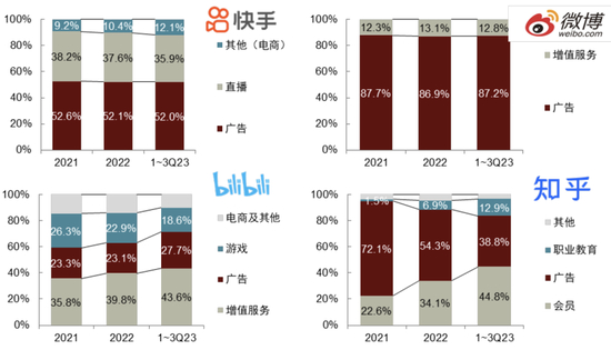 C端业务-其他:在传统流量变现方式外,探索多元商业化手段兑现社区差异化属性。除了广告、直播两种线上平台早期商业模式外,近年来平台还从自身社区属性出发,发展电商、游戏、付费阅读、教育等业务,我们认为: