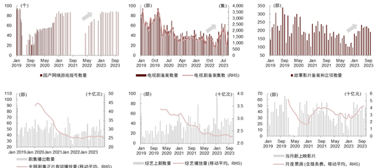 剧集项目发行和备案同比降幅收窄,但开机仍相对低迷。我们认为,伴随政策持续规范内容题材和创作流程,同时视频平台预算和观众收视行为更多向头部项目集中,剧集行业提质增效趋势延续,低效产能持续出清。