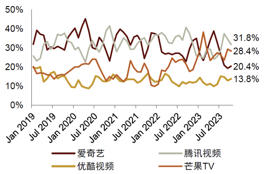 图表4:长视频平台剧集市占率:2023年年中以来整体趋势波动中趋稳