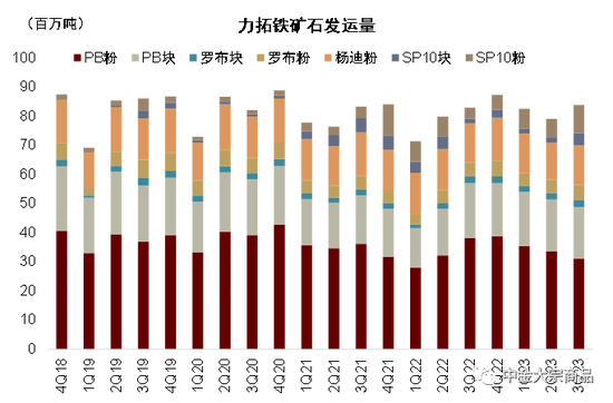 西澳方面,今年前三季度三大矿山合计产量同比增长了1.8%,其中力拓增幅为4%、必和必拓为-1%、FMG为2.3%。我们预计2023年三家产量今年合计增量在1100万吨左右,力拓贡献了主要增量,BHP和FMG两家产量相对平稳。力拓和BHP两家已基本完成了新产能对旧产能的接续,置换项目支撑起了当前的产量。力拓的Gudai-darri矿已于今年2季度达到名义产能,接力Channar、Eastern Range等退出产能。BHP的South Flank也稳步增长并逐步替代了Yandi矿,其可能在2024年达到满产。因矿浆管运输问题推迟投产的FMG Iron Bridge II项目已于今年8月正式投产,进入产能爬坡期。