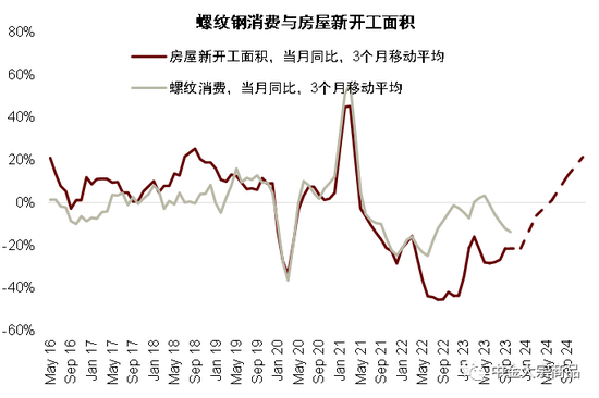 但我们同样认为下游需求的回落应是逐阶的,而非断崖式下滑,钢材消费围绕一个中枢进行上下波动或在中期维度内成为新常态。该判断是基于1)地产当前存量项目规模依然较大,新开工超跌后可能反弹至长期中枢附近;2)水利、城中村改造等基建仍是稳增长抓手,在以满足城镇化中后期的基建需求;3)中国制造业体量仍具规模。新需求亦不乏亮点,如风光装机、型钢等。(《需求逆风中的结构亮点》)我们预计2023年和2024年钢材实际消费将分别同比增长-1.8%和0.5%,具体分析请见正文的钢材需求部分。