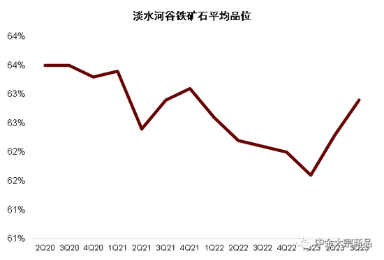 除了量的风险之外,我们看到主流矿的品位近来也有一定下滑。譬如虽然力拓的总发运量基本平稳,但从结构看其中高品PB粉的发运量自2021年以来便有比较明显的下滑,取而代之的是偏低品的SP10粉的大幅增长。淡水河谷也依赖低品矿冲量,平均品位下滑比较明显。另外非主流矿里Mineral resources等低品矿发运也在提升,我们预计明年低品矿的供给可能相对宽裕。因此在中长期维度里,另一个值得我们关注的潜在错配在于钢铁低碳诉求下高品矿(造球)需求和大量低品烧结粉供应之间的矛盾。