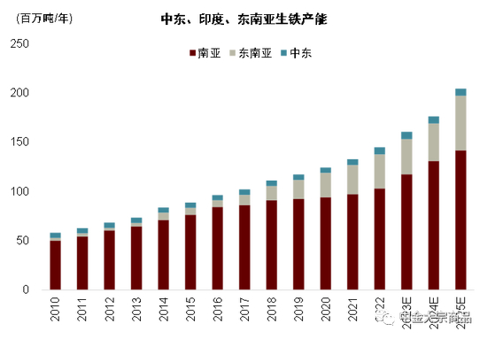 海外方面,在城市化和工业化的助力下,印度近来生铁和粗钢产量增量较快,我们预计今年印度粗钢产量或将突破1.3亿吨。以高炉-转炉为基础的长流程炼钢或将成为印度钢铁产量增长的主要驱动,随着高炉产能逐步释放,转炉钢份额或稳步提升,我们预计印度长流程钢占比在今年或将达到50%,今明两年生铁产量将分别同比增长9.4%和6.6%。印度铁矿石消费以自产为主,但生铁产量增长生铁产量的进一步增长将挤压铁矿出口量。