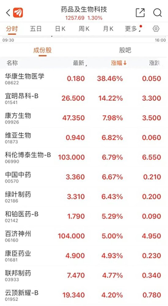 今日早盘,创新药持续反弹,宜明昂科-B涨14.22%,康方生物涨7.98%,维亚生物涨6.82%,科伦博泰生物-B涨6.79%。
