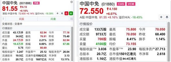 业绩超预期 中国中免AH股双双大涨