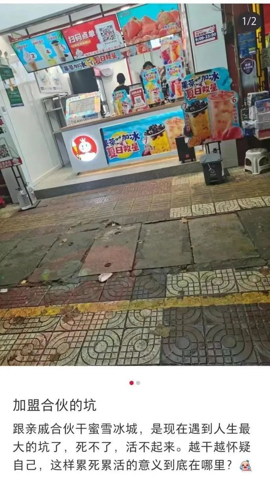 在社交平台上,有网友说,“蜜雪冰城我听说是这样的。假如你新开的店生意特别好,那么蜜雪冰城总部会在附近选址,选好先问你可继续开店,如果不继续开就放给别人开店。”