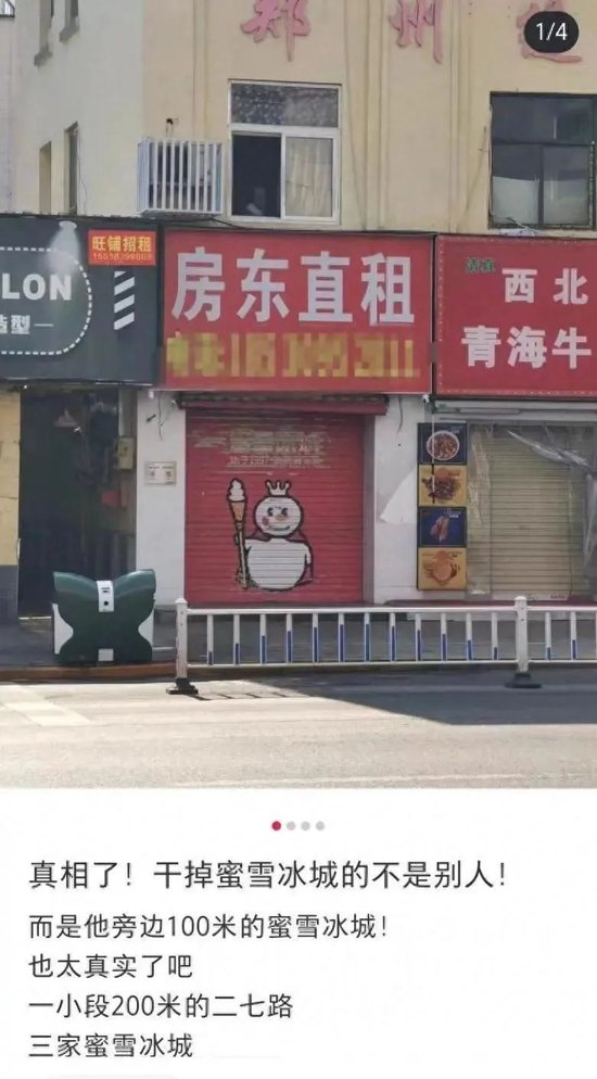 近日,有网友爆料说,“干掉蜜雪冰城的不是别人,而是他旁边100米的蜜雪冰城。”