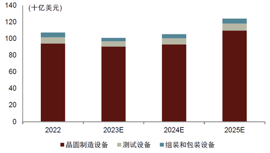 图表:2022-2025E全球晶圆制造设备市场拆分