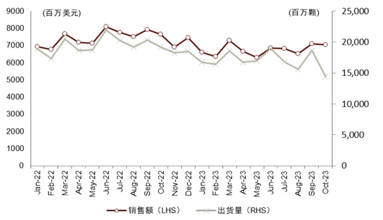 3Q23以来,消费市场回暖,部分MCU产品呈现弱复苏态势。2023年下半年,随着消费类终端新品发布、厂商库存逐步恢复正常,消费类下游市场有所回暖。据中微半导财报,3Q23单季度出货量突破4.7亿颗,本年度累计出货约12亿颗,已超过上年度全年,3Q23存货周转天数为396.53天,而1Q/2Q23存货周转天数分别为486.75/448.77天。据富昌电子,3Q23以来国际大厂的8位和32位MCU交期继续下滑,价格环比持平,意法半导体部分型号价格已跌至2021年缺货涨价前水平,9月价格下滑幅度明显收窄。
